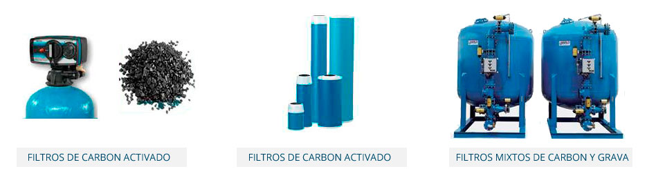 Este proceso consiste en hacer pasar el agua a través de un tanque con carbón activado, ya sea en bloque o granular. Este medio es sumamente eficiente para remover el cloro, mal olor y sabor del agua, así como solidos pesados (plomo, mercurio) en el agua. Generalmente es el segundo proceso para el purificado del agua, pero este es el único proceso que es necesario, ningún proceso de purificado puede prescindir de él. Es el único que remueve los contaminantes orgánicos del agua (restos de insecticidas, pesticidas, herbicidas y bencenos, así como derivados del petróleo, al terminar este proceso el agua debe tener un sabor y olor excelente. El filtro de carbón funciona por el mismo principio que el filtro de arena, la diferencia radica en los elementos filtrantes y su finalidad. El carbón activado es un material natural que con millones de agujeros microscópicos que atrae, captura y rompe moléculas de contaminantes presentes.